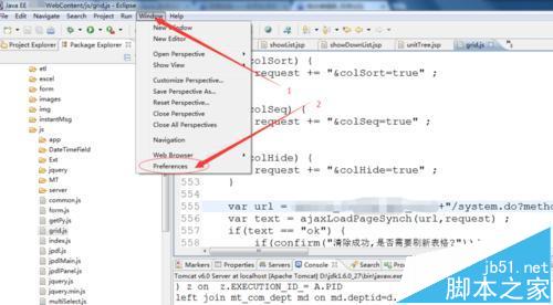 2、打開eclipse,然后點擊上面的window,會出來一些下拉菜單,選擇preferences。