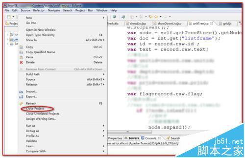 7、把不需要運行的項目關閉,一個是減少沖突的可能性,另外也可以節省一定的運行內存。關閉的步驟是選中不需要的項目,右鍵close project,打開的話就選擇open project。