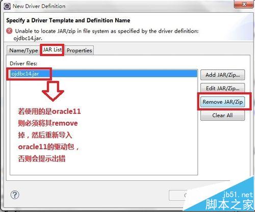 8、找到JAR List,若大家使用的是oracle11,請將其中的ojdbc14給remove掉,否則,Eclipse會不停提示出錯。