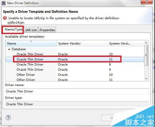 7、緊接上步,在新的對話框中,找到你所使用的oracle版本,建議選用Oracle Thin Driver,靈活,方便。