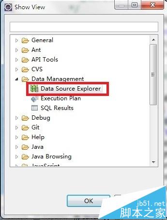 3、在彈出的新窗口中,打開文件夾“Data Management”找到“Data Source Explorer”,并單擊“OK”。