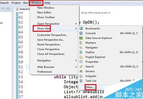 2、打開Eclipse,找到“Window”--“Show View”--“Other...”