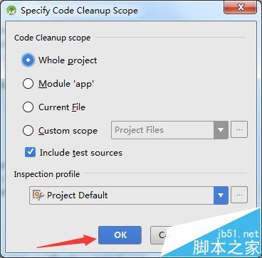 3、這樣就會彈出了一個specify code cleanup scope的選項。進行點擊瀏覽菜單的按鈕。