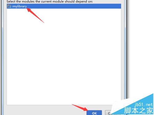 5、可以看到module的中自己創(chuàng)建library包,選中mylibrary,然后點(diǎn)擊“OK”。