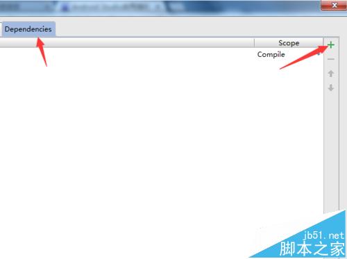 3、進(jìn)入到該項(xiàng)目中點(diǎn)擊中間位置中的“Dependencies”后,進(jìn)行點(diǎn)擊添加按鈕“+”。