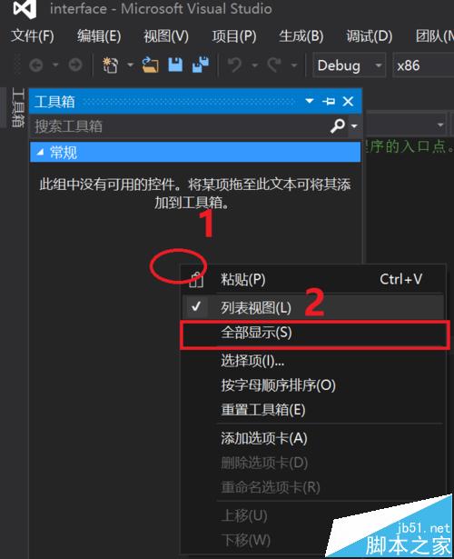 9、再在工具箱空白處點擊右鍵,選擇”顯示全部“,跳到第10步驟。