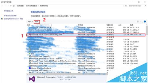 6、找到安裝好的visual studio,點擊然后再選擇圖中的“更改“,跳到第7步驟。