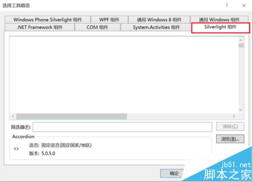 4、然后點擊“Silverlight組件”,如果下面方框沒有內容,就跳到第5步驟;如果有內容,就跳到第10步驟