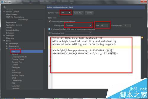 5、然后背景想當于保存好了,然后設置字體,來到下面的Colors&Fonts--->Fonts進行字體的設置。選中自己設的名字進行修改字體形式和大小。