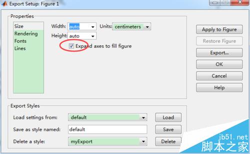 彈出的Export Setup對(duì)話框中進(jìn)行相應(yīng)的配置,首先進(jìn)行導(dǎo)出圖片大小的設(shè)置,包括長(zhǎng)度單位,高和寬,這里一定記得點(diǎn)上“Expand axis to fill figure”以便導(dǎo)出的圖像不含空白邊框。
