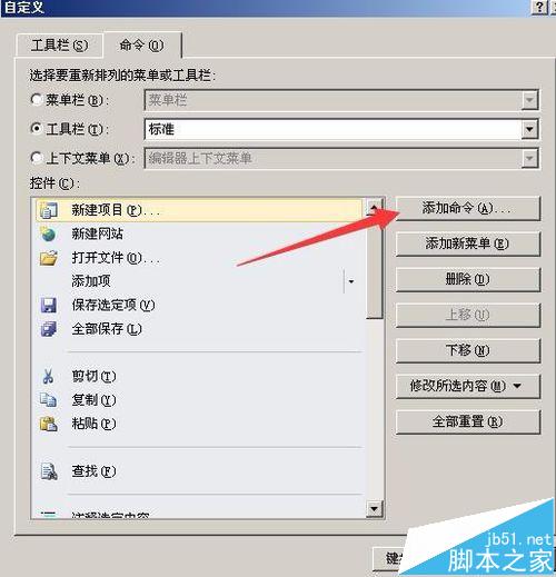 9、確定后關閉添加命令按鈕,重新啟動vs