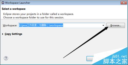 4、這時,我們可以自己來設(shè)置eclipse的工作區(qū)了,直接點擊Browse