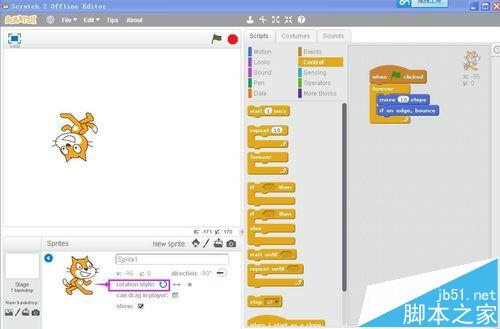 在用scratch創建運動動畫時,給角色設置碰到邊緣就反彈后,發現角色倒過來了,非常的討厭,那怎么解決這個問題呢?