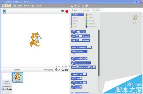 1、打開scratch2.0,進入工作界面;