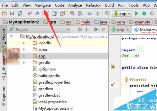 3、然后進(jìn)行點擊Android studio菜單中的“navigate”的選項菜單。
