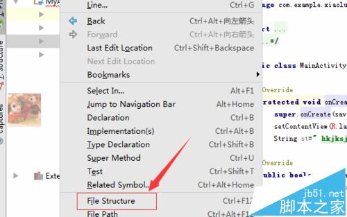 4、然后就會彈出了下拉菜單中進(jìn)行選擇為“file structure”的選項菜單。