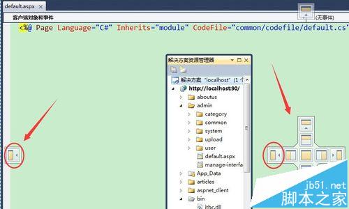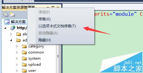 1、打開VS2010,并且打開一個項目。資源管理器??吭谟疫?,不符合我的使用習慣,如果直接拖拽到左邊,會發現它還是浮動在代碼界面的上面,用起來很不方便。