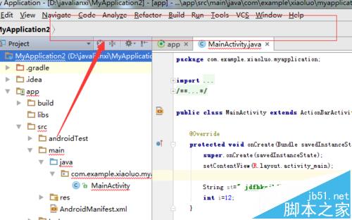 1、可以看到的是當前的android studio的窗口的菜單欄中顯示了很多輔助的工具是可以使用的。