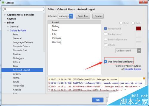 5、新建的android logcat還是不能直接修改,把use inherited attribute的溝去掉。