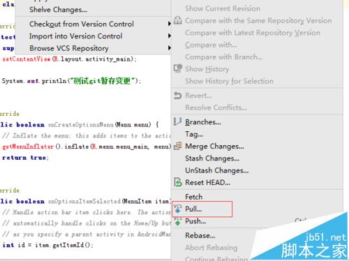 4、選擇git之后就會彈出下一級的菜單中,進行選擇為“pull”的菜單。