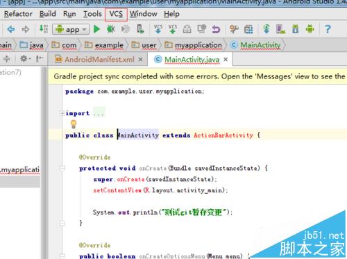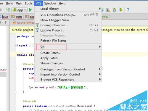 2、然后進行點擊Android studio中菜單中的“VCS”的選項菜單。