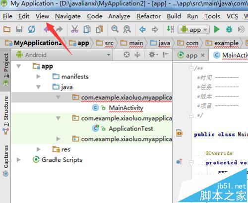 1、通過(guò)Android studio的菜單中的進(jìn)入到,進(jìn)行點(diǎn)擊菜單中的”view“選項(xiàng)。