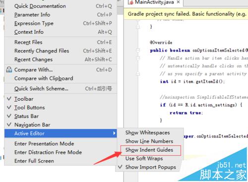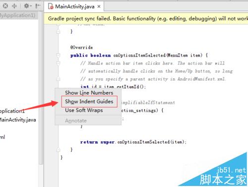 在進行使用的Android studio提供開發界面以比eclipse非常的好用的多了,而在進行使用編輯器的過程中,那么在進行對代碼中縮進提供較好功能,能通過線方式來代表是否縮進,顯示也較為明顯,效果也更佳。