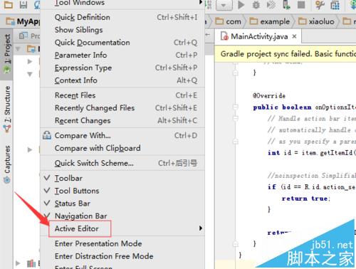 2、彈出了下拉菜單中進行選擇為“active editor”的選項。