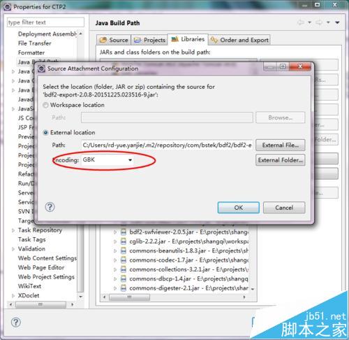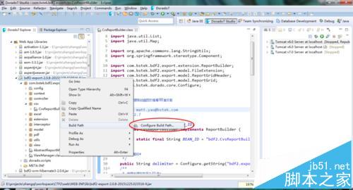 2、選中bdf2-export-2.0.8-20151225.023516-9.jar,點擊右鍵,打開buildpath,如圖: