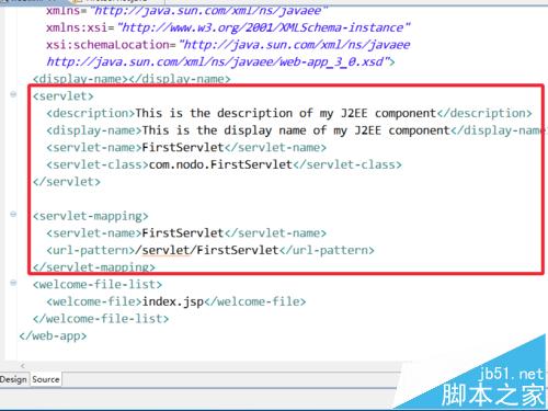 4、打開“FirstServlet”查看代碼中各方法的書寫,以及打開“web.xml”配置文件,查看是否成功配置。