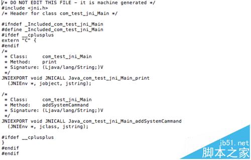 2、進入bin文件夾,在命令行中輸入javah -jni com.test.jni.Main以創建c++頭文件。頭文件中包含兩個native方法的c++寫法。