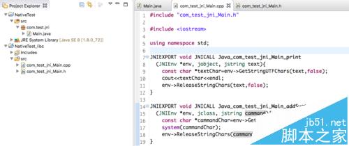 1、創建java項目,編寫有main和兩個帶有native關鍵字的方法(如圖),保存編譯。
