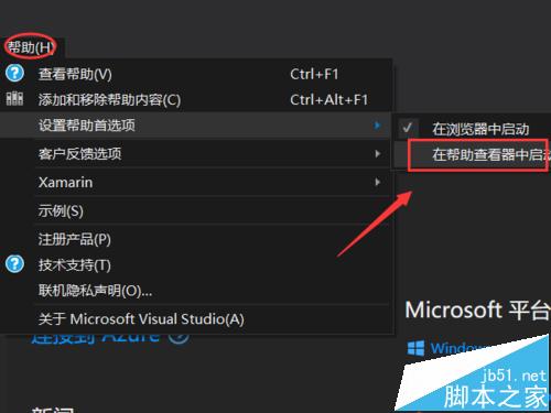 2、我們該如何安裝離線幫助文檔呢?首先,我們需要在visual studio2015的幫助首選項中選擇”在幫助查看器中啟動“。