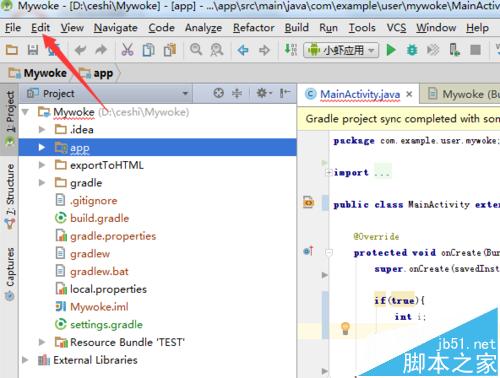 4、選中完成了字母之后,然后就進(jìn)行點(diǎn)擊Android studio的菜單中的”Edit“的選項菜單。