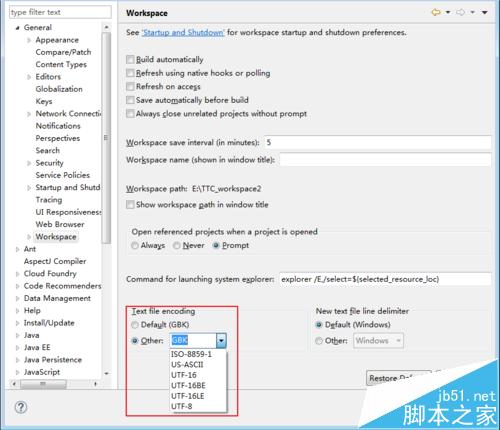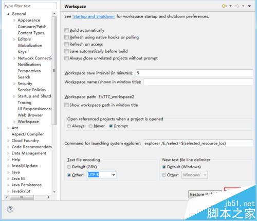 2、點開【General】>>然后把鼠標點擊在【Workspace】上