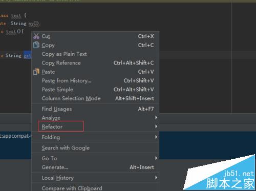 2、進行選中的然后進行右擊的就會彈出了下拉菜單中進行選擇為“refactor”的選項菜單。
