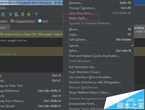 進行使用的Android studio中進行對項目中代碼中開發,那在進行對代碼中的類,那么就需要在代碼中進行輸入代碼中之后,就需要把代碼寫好的類進行轉換為靜態的方法。那么在android studio怎么轉出靜態方法呢
