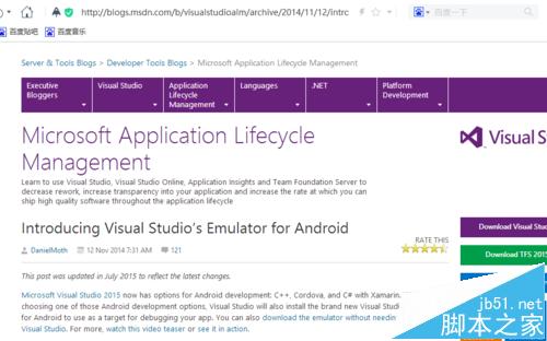 2、在百度搜索框注入Visual Studio Emulator for Android,下載官網插件,進行安裝,上面提供下載