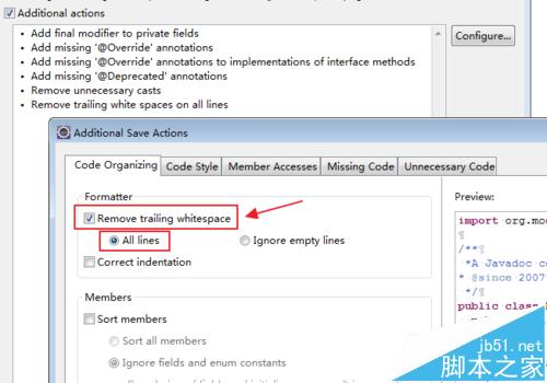 5、此時(shí)會(huì)出現(xiàn)如下界面,只要勾選【Remove trailing whitespace】選擇【All lines】即可。