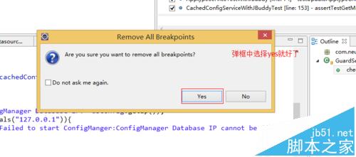 4、彈出來的對話框,點擊yes,就可以取消所有的斷點了。