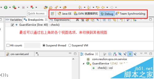 5、最后,取消了所有斷點之后,可以通過切換不同的視圖回到你想要的界面。