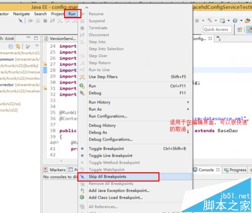 在javaee等編輯界面,直接使用run-->removebreakpoint。就可以取消所有的斷點。