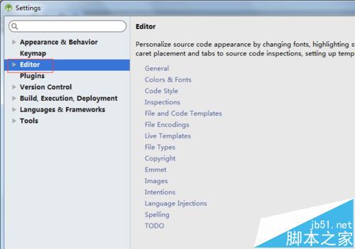 3、進入到了setting的選項菜單之后,進行選擇列表中的editor的選項。