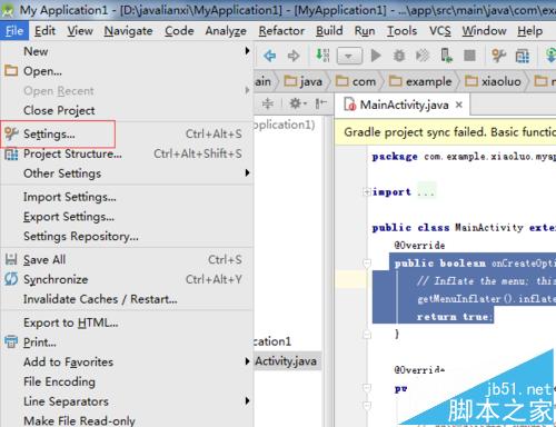 1、進行打開電腦中的Android studio的選項上菜單中的“file”的選項。