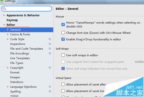 4、這樣就會彈出對editor的展開之后,進行選擇為general的選項。