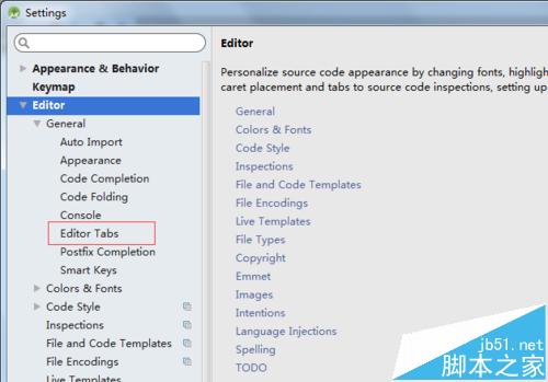 5、進入到了general的選項中進行選中editor tabs的選項。
