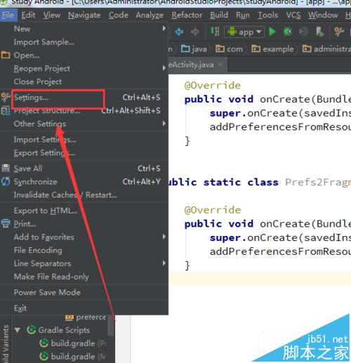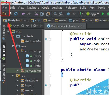 1、首先打開Android Studio,單擊菜單欄中的“File”菜單