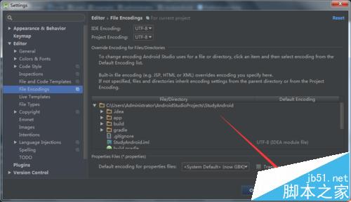 6、接下來在最下面的“Default encoding for properties files”選項中也將其更改為UTF-8,然后在后面的復選框上打上對勾