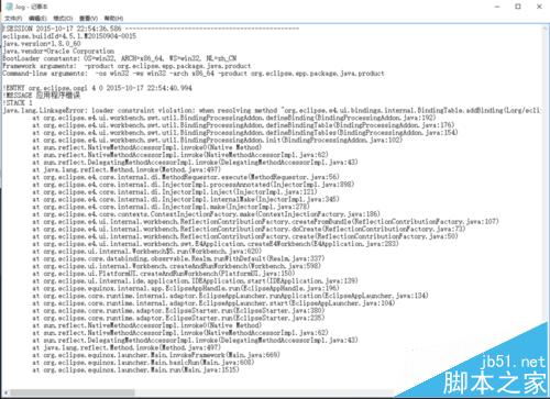 1、打開eclipse的Workspace,本人把Workspace設置在E:/eclipse/Workspace/,打開.metadata文件夾下的.log文件,查看.log文件里內容。