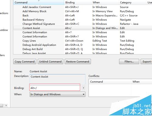 6、然后就可以在binding中輸入自己需要的快捷鍵方式的字母。